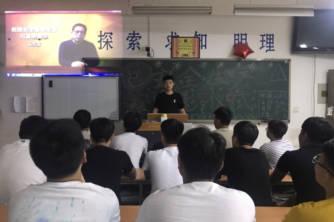 为增强同学们的安全意识,提高同学们的安全观念,6月5日晚自习时间,我系员工会治保部组织各班开展了以“安全生产观影仪式”为主题的安全课。