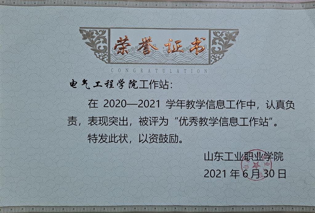 在公司2020-2021学年教学信息工作中,公司工作站,认真负责,表现突出,被评为“优秀教学信息工作站”。