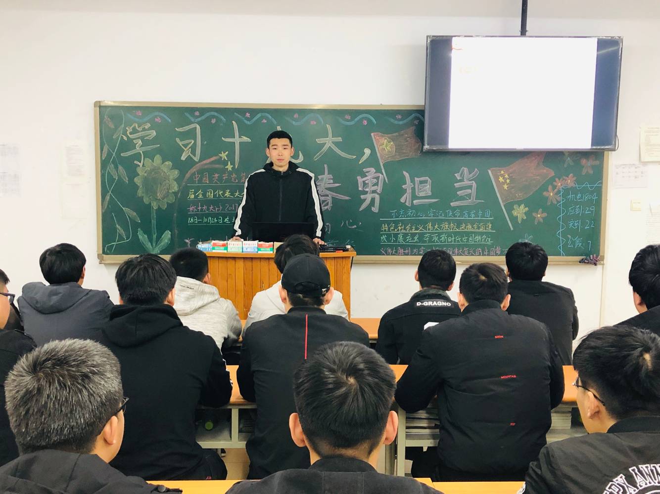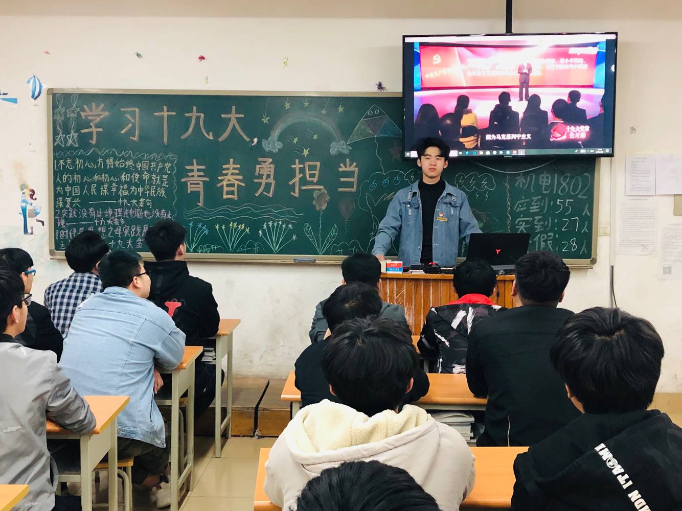 为深入学习贯彻党的十九大精神,学习习近平新时代中国特色社会主义思想,特别是认真践行习近平总书记在十九大报告中对青年人提出“有理想、有本领、有担当”的希望和要求,4月2号晚自习时间,我系员工会组织部组织各班开展了以“学习十九大,青春勇担当”为主题的团课。