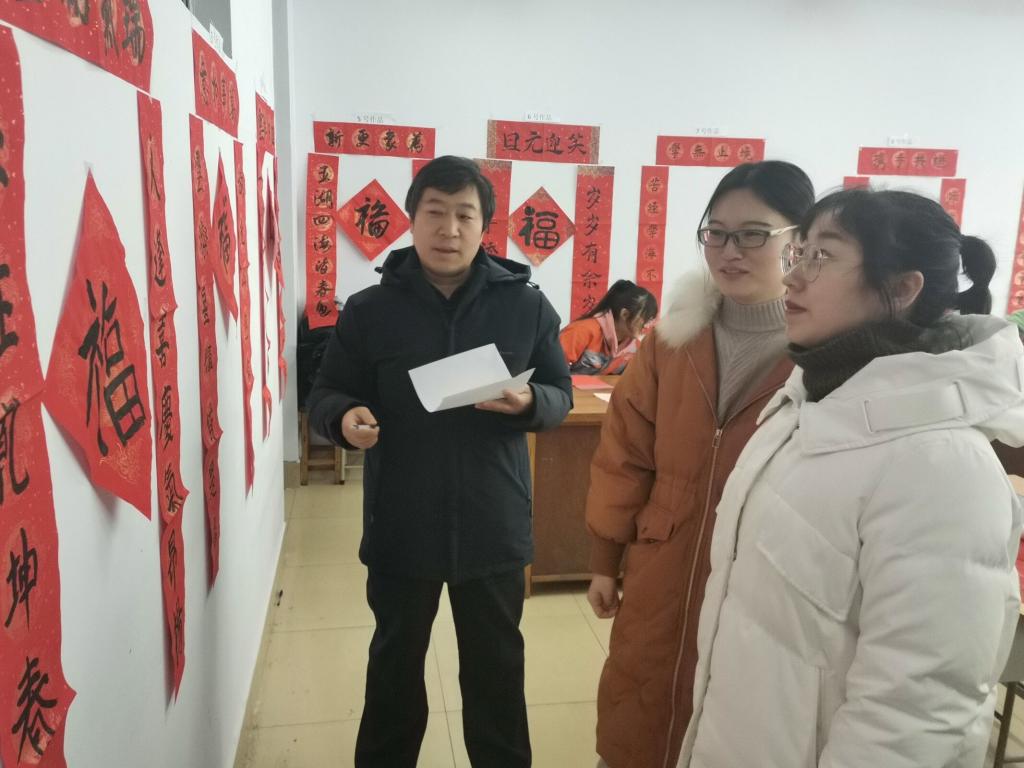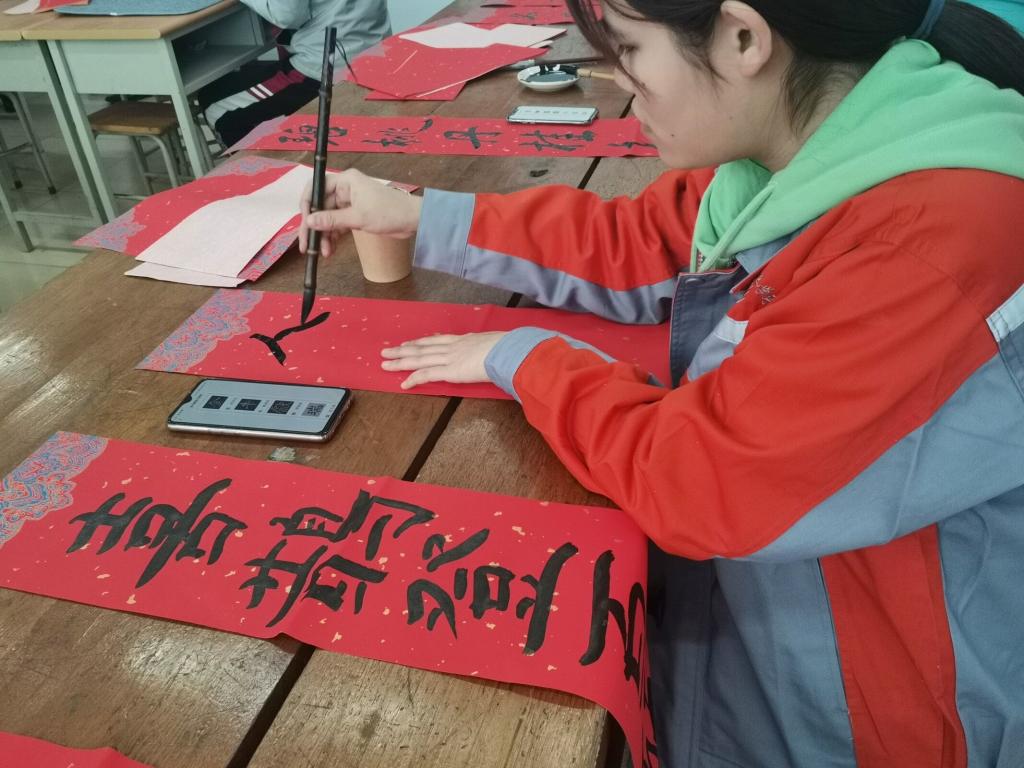 活动中,同学们一起挥毫泼墨,一幅幅飘着浓浓的墨香,包含着浓浓的年味的一张张“福”字悦然在红纸上,蕴藏着美好祝福的春联和“福”字得到领导老师、同学们的点赞。