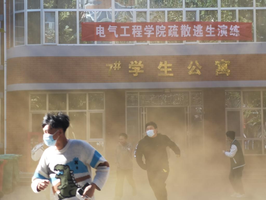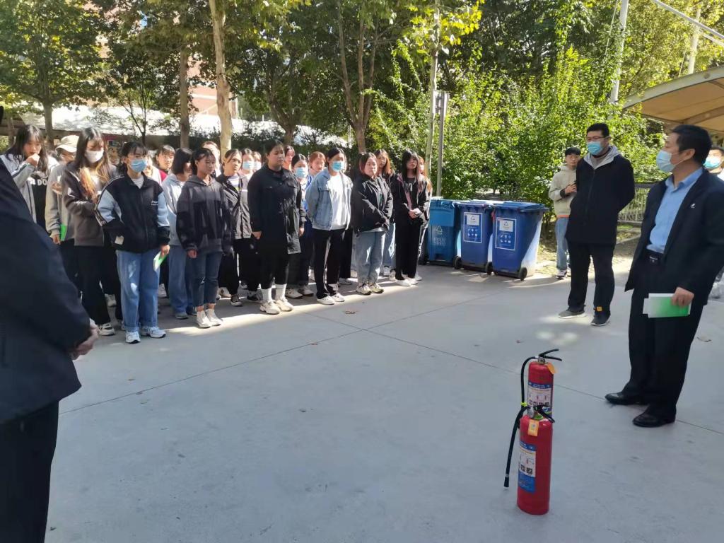 在统一指挥下,疏散逃生演练正式开始,同学们用湿毛巾等捂住口鼻,按照逃生演练方案设定的逃生路线,迅速而有序地从宿舍撤离。公司辅导员老师高源、尹大威为同学们讲解有关防火的知识、演示了灭火器的使用方法,在认真听讲及观摩后,同学们亲自体验了灭火器的使用。