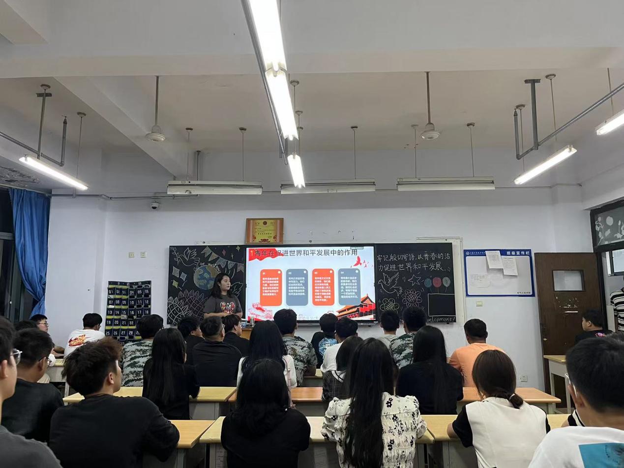 团课中,各班级学习了习近平总书记在成都大运会开幕式欢迎宴会上的致辞、在庆祝中国共产主义青年团成立100周年大会上的讲话、在党的二十大报告等各个重要场合对广大青年的殷切嘱托,当代中国青年生逢其时,施展才干的舞台无比广阔,实现梦想的前景无比光明。