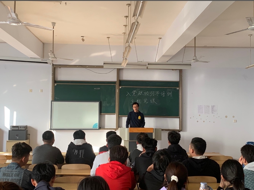 9月16日,党支部书记杨威老师以《党员的条件、权利和义务》为主题给同学们讲解党的历史和一些党章制度,并向同学们讲述党的规章制度。9月17日,由公司辅导员潘灿灿老师科技楼717以《端正入党动机》为主题,为同学讲解党员的责任跟义务,并要求同学们端正入党动机。9月23日,由公司辅导员于晨晨老师以《爱国就在我身边为主题》,同学们讲解爱国主义的含义,并要求新青年无时无刻心系祖国。10月22日,党支部书记杨威老师给同学们讲解入党要求,并对这次入党积极培训进行总结。
