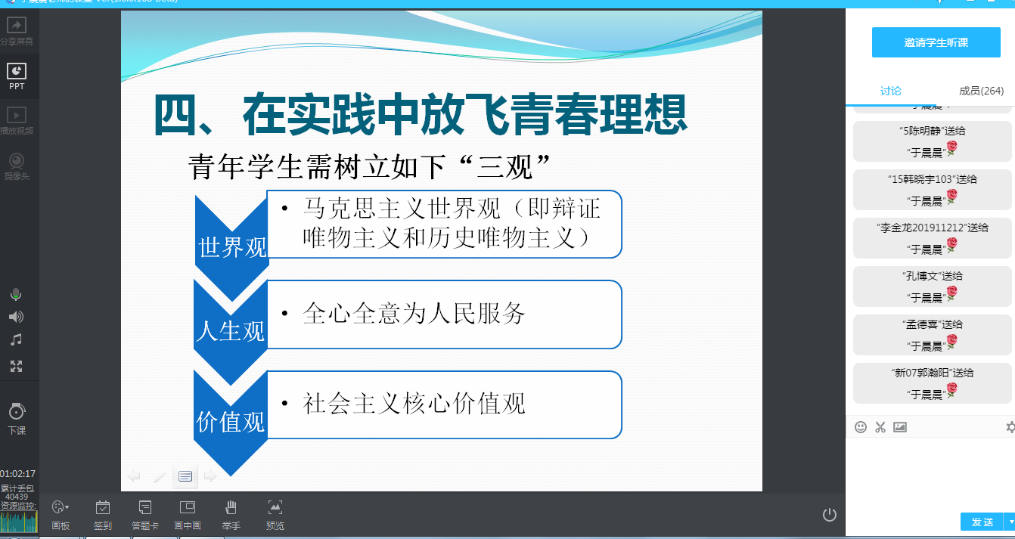 为提高我系团员的责任意识,坚定理想信念,2020年5月15日下午,我系辅导员于晨晨老师利用线上教学为同学们讲授“坚定理想信念,增强历史担当”主题团课。