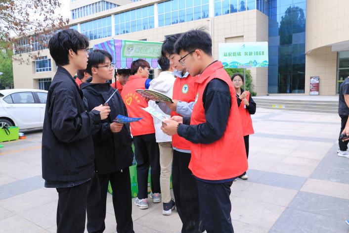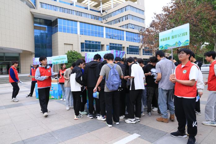 宣讲过后,“全员环保 生态市集”绿色低碳生活实践环节在科技楼南门广场火热开展。现场共设立六个主题摊位,引导同学们通过现场互动,普及生态环保科普知识,增添绿色环保、垃圾分类的体验乐趣,激发同学们的参与积极性和持续动力。师生在志愿者们的引导动员下,依次体验了丰富的展区摊位与趣味互动。