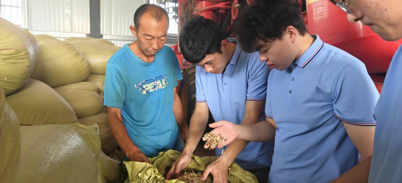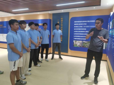 实践团通过参观黄河三角洲耐盐碱大豆产业创新中心,并到大豆、玉米带复合种植示范区进行实地参观学习,种类繁多的大豆品种让实践团成员们赞叹不已。因土地含盐量较高,大豆品种的抗盐碱性成为关键的指标。国审豆“齐黄34”,不仅抗盐碱,而且抗涝,平均亩产量超过350公斤,实现了大豆在盐碱地上的单产新突破。值得敬佩的是,在实践团实地参观时,正值炎炎烈日,每一位工作人员都充满热情,也让我们充分感受到了实践的条件艰苦与科研人员吃苦耐劳、自强不息的精神。