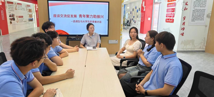 为更深入地了解从脱贫到乡村振兴的发展历程,实践团来到了东营市河口区义和镇,与当地的致富带头人、农业技术能人、手工艺人以及驻村干部进行了深入交流,并开展了“座谈交流促发展,青年聚力助振兴”为主题的老员工与选调生的青春对话交流活动。