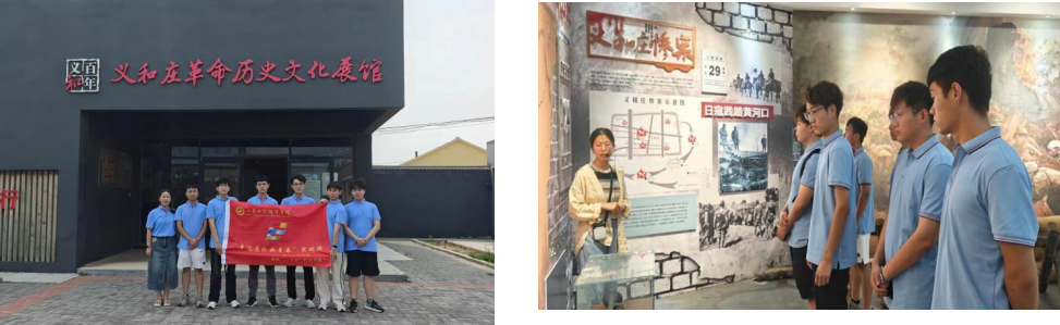 实践团队员来到东营市河口区义和庄革命历史文化展馆,寻访革命先辈的奋斗足迹,感受催人奋进的革命精神。早在1938年,义和大地上就有了党的活动,第一届沾化县委在这里诞生,这里是清河军区根据地,许世友、杨国夫等30余名将领在此浴血奋战,发生过王集、小河、大英铺等激烈战斗。抗战期间,侵华日军在这里制造了骇人听闻的“义和庄惨案”,义和大地历遭涂炭,饱受战火摧残和洗礼。