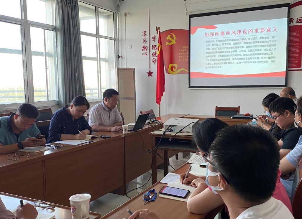 此次党课张部长从加强师德师风建设的重要意义开始,与全体党员共同逐条学习了高校教师“红七条”和新时代高校教师职业行为十项准则的具体内容,并结合案例交流了学习体会。张部长指出作为一名高校教师,要认真贯彻落实习总书记重要讲话精神,进一步增强教师的责任感、使命感、荣誉感,自觉规范职业行为,严守师德底线,努力成为有理想信念、有道德情操、有扎实学识、有仁爱之心的四有好老师,努力成为精于“传道授业解惑”的“经师”和“人师”的统一者 ,不断提高自身道德修养,以模范行为影响和带动员工,做员工为学、为事、为人的大先生。