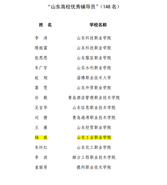 近日,中共山东省委教育工委发布《关于公布2024年山东“十佳百优”公司思政课教师和高校辅导员评选结果的通知》,公司Bevictor伟德杨威荣获“山东高校优秀辅导员”称号。
