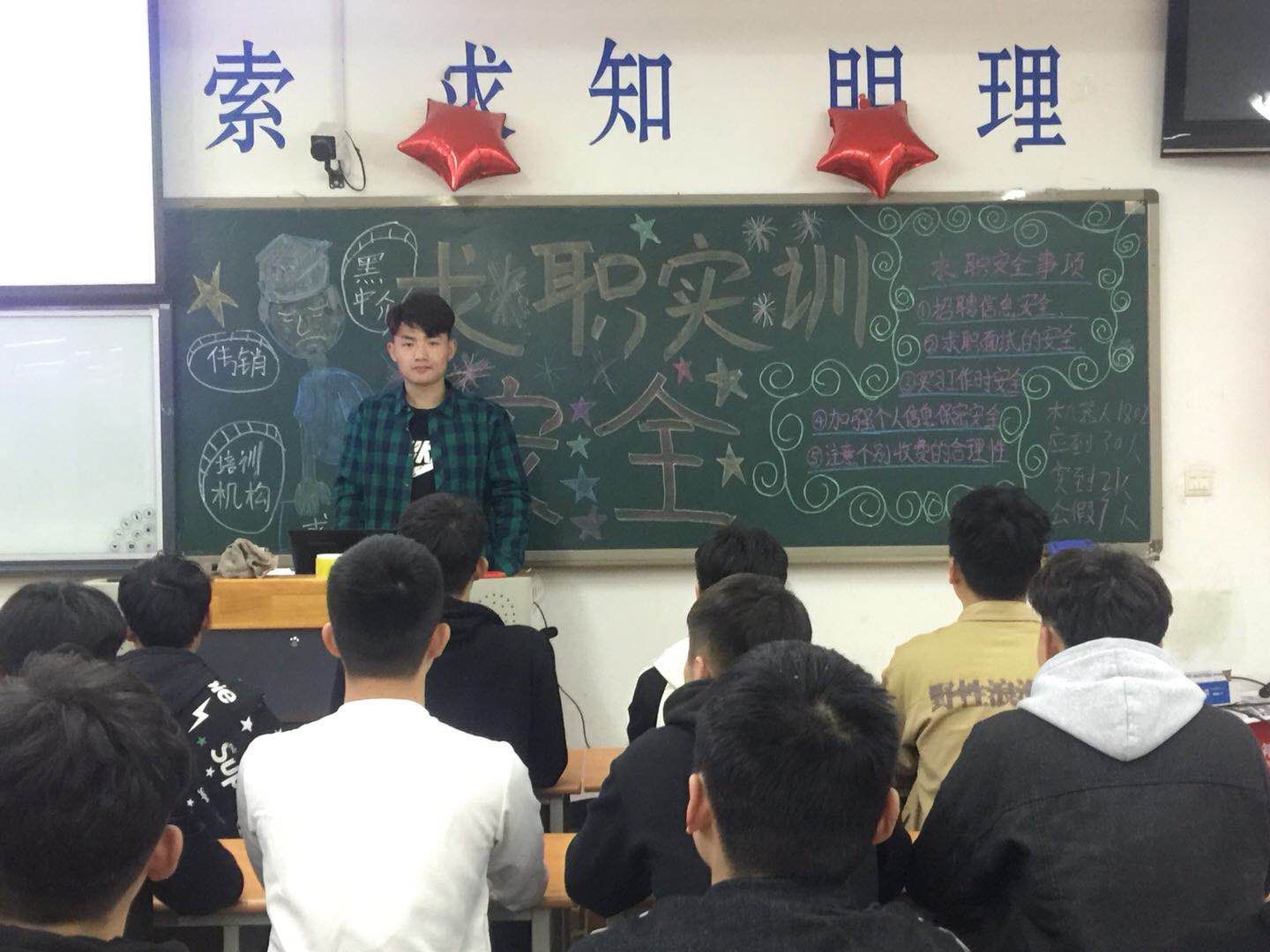 为提高同学们的综合素质和实践能力,增加对求职过程的了解,3月20日晚自习时间,我系员工会治保部组织各班开展了以“求职实训安全”为主题的安全课。