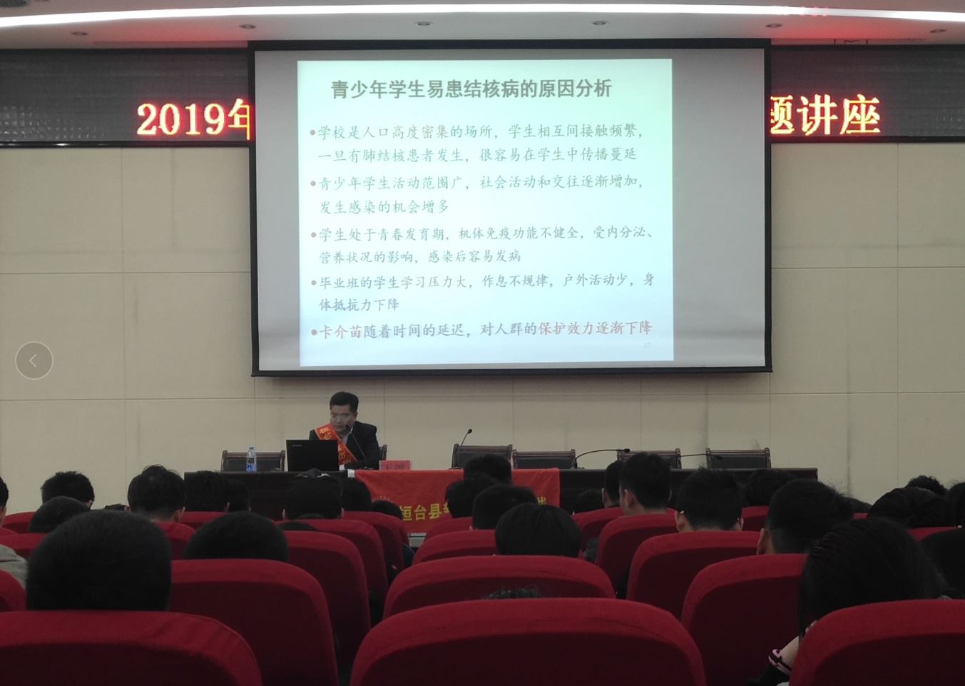 为提高同学们对防治结核病知识的知晓率,提高同学们的自我保护能力,3月14日下午,公司在科技楼二楼报告厅举办了“2019年324世界防治结核病日专题讲座”活动。公司有关领导出席本次活动。