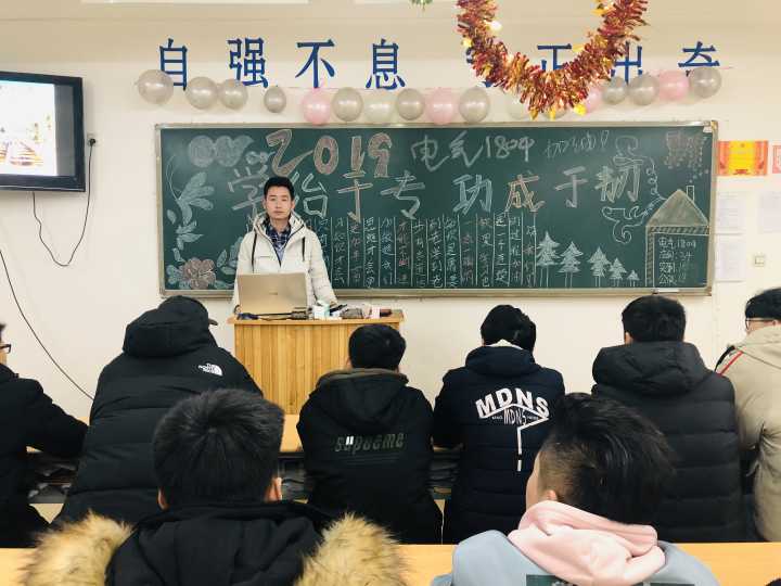 为充分调动同学们学习的积极性,养成专心学习的良好习惯,1月1日晚自习时间,我系员工会组织部组织各班开展了以“学始于专 功成于韧”为主题的团课。
