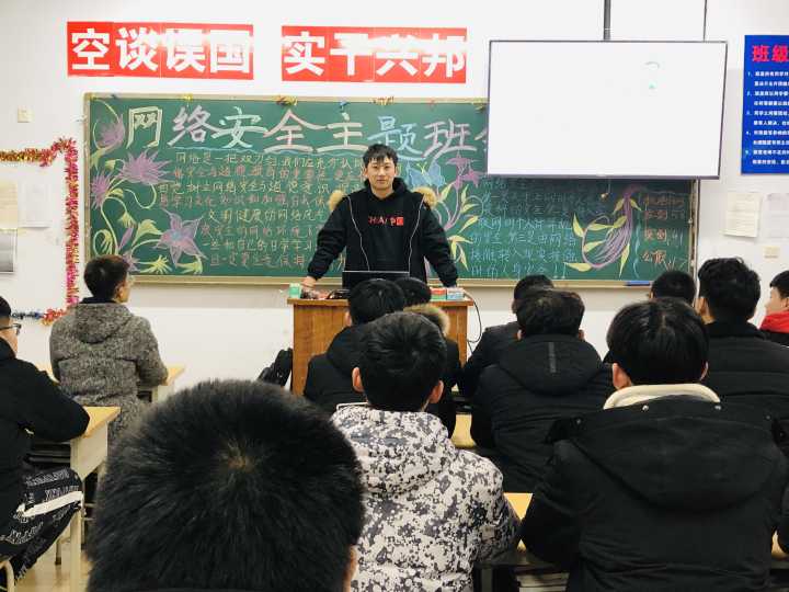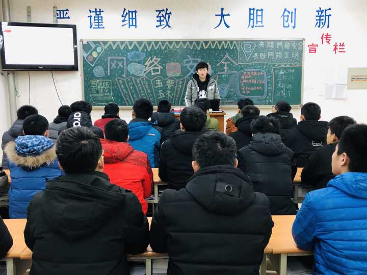 为增强同学们的网络安全意识,提高同学们的网络安全防范能力,全面普及网络安全知识,1月2日晚自习时间,我系员工会治保部组织各班开展了以“网络安全”为主题的安全课。