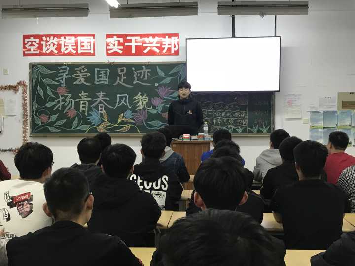 为增强同学们的社会意识、责任意识,弘扬爱国主义精神,展现老员工青年积极向上的青春风貌,4月16日晚自习时间,我系员工会组织部组织各班级开展了以“寻爱国足迹,扬青春风貌”为主题的团课。此次团课在各班教室有序进行,并由本班团支书主持。