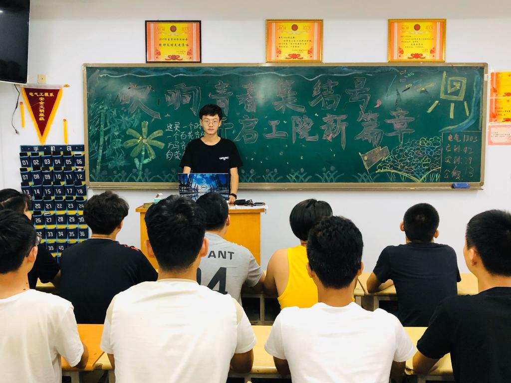 为了提高同学们的思想品德和政治素养,营造良好的学习氛围,9月10日晚自习期间,我系员工会组织部组织各班开展了以“吹响青春集结号,开启工院新篇章”为主题的主题团课。