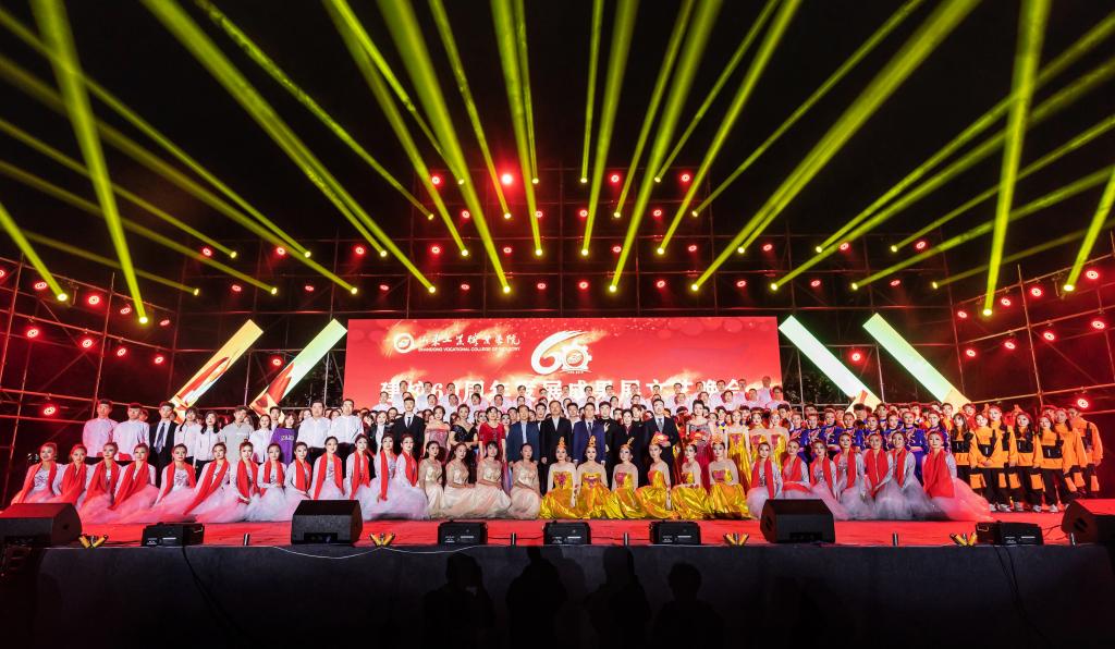 2019年11月6日晚6点半,伟德体育为庆祝建校60周年举办了一场以建校60周年发展成果展的文艺晚会,公司全体师生相聚青年广场为山工院庆祝。