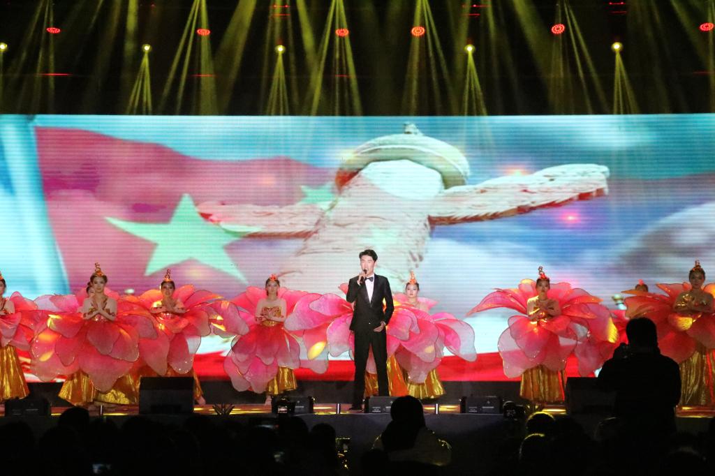 一段热情的开场舞《盛世鼓舞》过后,明亮的灯光全部聚到舞台,主持人孙世超老师,张佳佳老师,刘昊阳和孟璇同学为公司献上祝福语。紧接着开启今晚校庆第一篇——工业甲子流金岁月篇。本篇节目中优美的歌声里都透露着对建国70周年和工院60周年的美好祝福,还有此篇对山工院60年来一路的艰辛和坎坷的回忆。