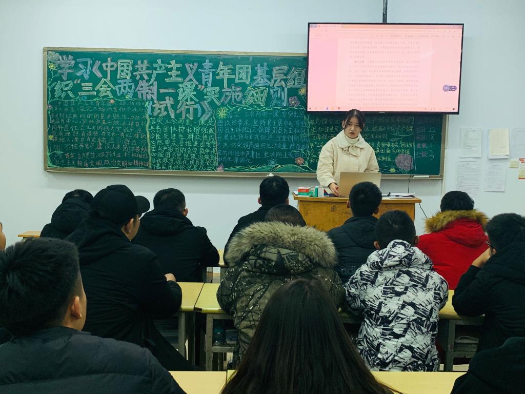 为加强团员思想政治教育和自我教育,强化团员意识,提升基层团组织凝聚力和战斗力,保持共青团员的积极性、先进性。11月26日,电气工程系利用晚自习时间组织主体团课,深入学习了《中国共产主义青年团基层组织“三会两制一课”实施细则(试行)》,电气工程系全体参与其中。