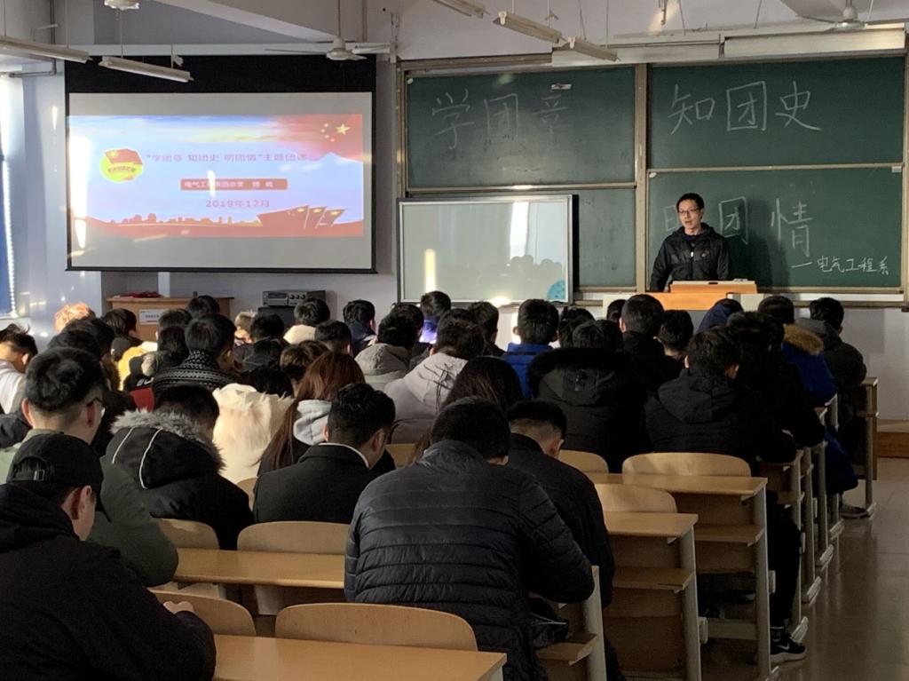 12月11日,电气工程系团总支书记讲团课活动在科技楼725教室举行,我系团总支书记杨威老师围绕“学团课 知团史 明团情”的主题作了专题讲座。