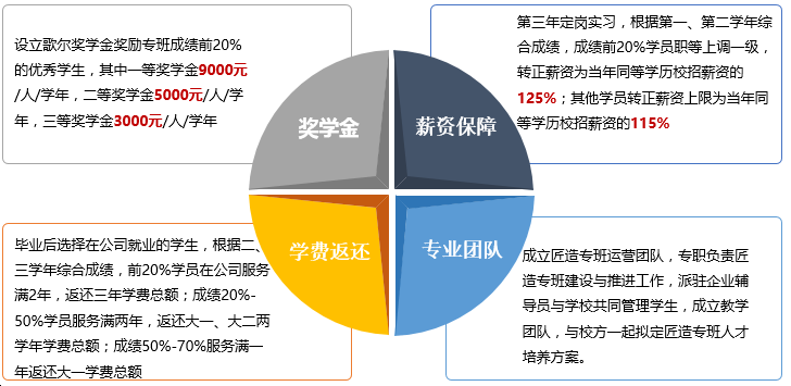 歌尔“匠造专班”不仅为同学们提供专业的学习空间,同时也提供众多的实习及工作岗位。为了提升和激发员工的积极性,除公司所有标准帮扶激励政策外,设立歌尔奖学金等特惠政策。欢迎同学们积极报考、好好学习,在奋斗中释放青春激情、追逐青春理想,以青春之我,奋斗之我,为民族复兴铺路架桥,为祖国建设舔砖加瓦!