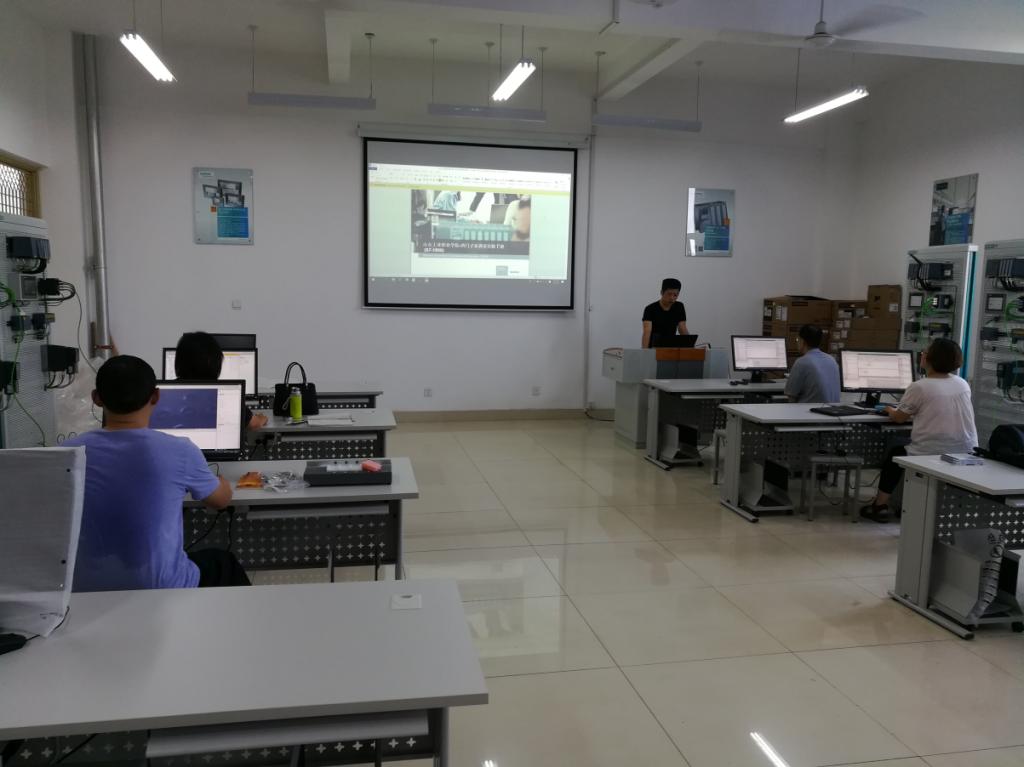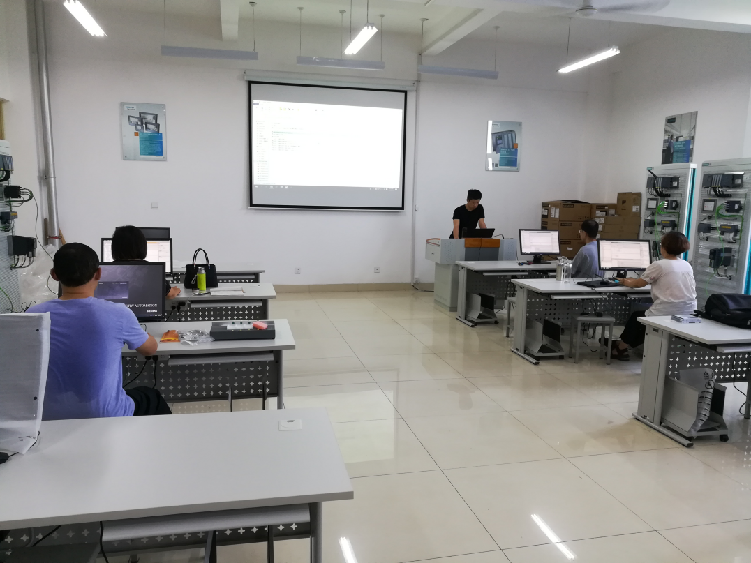 随着实训中心的建成,从2019年7月1日开始,迎来了为期三天的培训工作,承接本次任务的培训师是具有多年工程实践及培训经验的西门子公司工程师。他首先对整个硬件系统讲解,然后结合软件的使用,先是对逐个西门子控制器进行运行、调试,然后组成整个西门子控制系统。本次参加培训的老师们都非常珍 惜这次机会,能够克服各种困难,积极地参加培训。所有参训人员都能够认真地听课、精心操作、互相讨论、反复练习,顺利完成了培训工作。